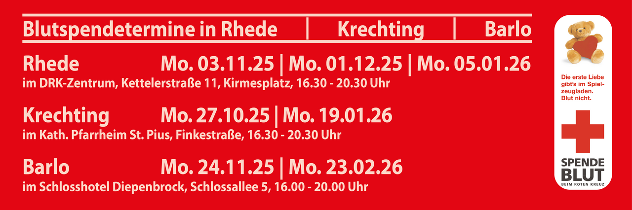 Der DRK-Ortsverein Rhede e.V. hat eine lange Tradition. Schon seit 1909 engagieren sich Menschen in und um Rhede für das Deutsche Rote Kreuz. So leisten die Aktiven (Bereitschaft) einen wichtigen Beitrag zum Schutz der Bürgerrinnen und Bürger. Mit einer Vielzahl geleisteter Sanitätsdienste und Sicherheitswachen, einem bedeutenden Engagement im sozialen Bereich und der ständigen Präsenz in der Gefahrenabwehr bilden die Helferinnen und Helfer des Ortsvereins einen verlässlichen Rückhalt in Fragen der öffentlichen Sicherheit. Dabei halten die jungen Menschen der Bereitschaft das Ehrenamt hoch.