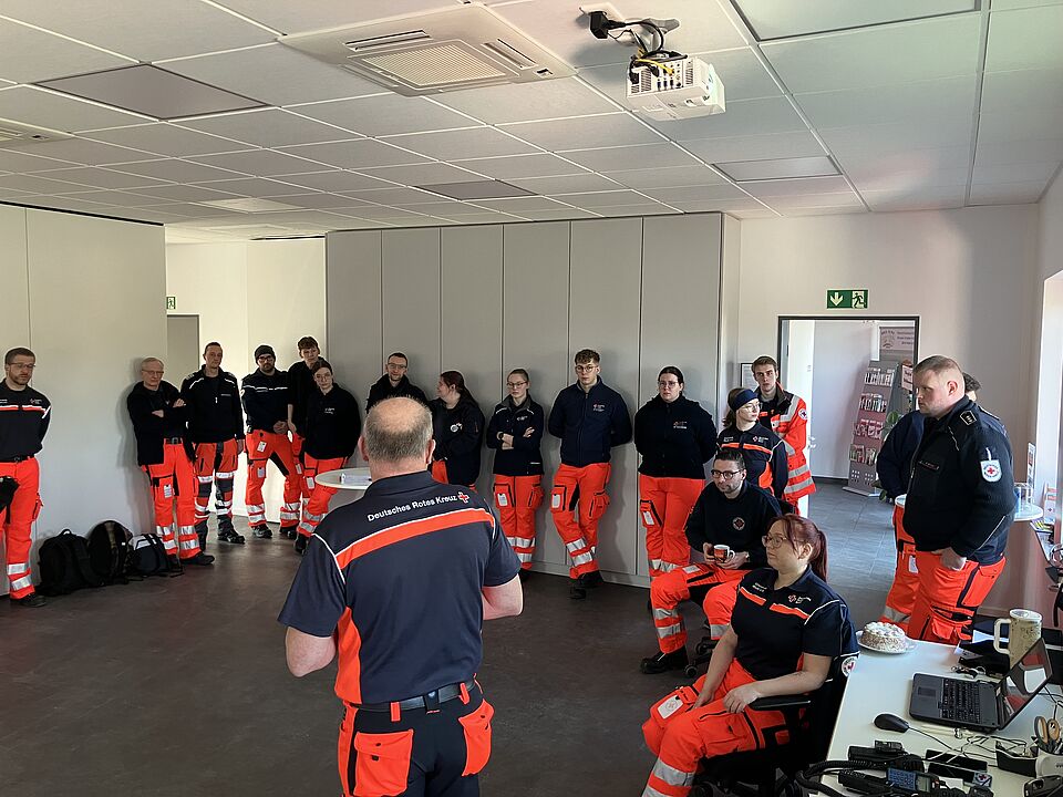 Für die Sicherheit der Jecken waren rund 25 Einsatzkräfte des Deutsches Rotes Kreuz im Einsatz. Bei der Einweisung wies Einsatzleiter Gregor Schulte besonders auf die neuralgischen Punkte in der Innenstadt hin. Unterstützung erhielten die Helferinnen und Helfer von den Nachbar-Ortsvereinen aus Bocholt, Heiden, Isselburg und Raesfeld. Damit zeigte sich einmal mehr der starke Zusammenhalt der Ortsvereine im Kreis Borken bei Großveranstaltungen.